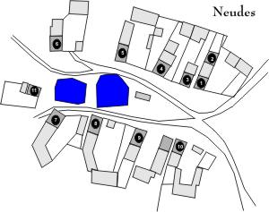 geführte Umschreibbücher aktuell gehalten wurden. 1808 wurde in Bayern auch die Katastervermessung eingeführt. Unsere Gegend war 1852 an der Reihe. Jedes Grundstück wurde vermessen, einem bestimmten Eigentümer zugewiesen und dessen Bonität festgestellt. Die Ergebnisse der Landesvermessung bildeten zusammen mit den Katastern des Grundsteuerprovisoriums die Grundlage des Grundsteuerdefinitivums. Dieses fand bei uns 1855 mit der Erstellung des sogenannten Urkatasters seinen Abschluß. Die in demselben festgelegten Hausnummern gelten in den Dörfern Neudes und Holzmühl bis heute. |