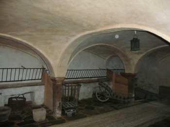 Im Stall mit seinen prächtigen Kappengewölben, erklärte