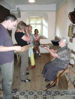 Runde ein. Der große gemauerte Kachelofen diente früher