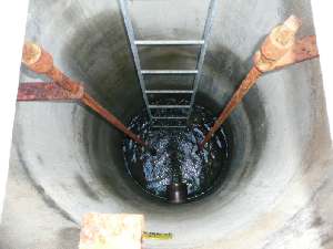 offenen Drainagegraben entnommenes Wasser in den Schacht. Diese