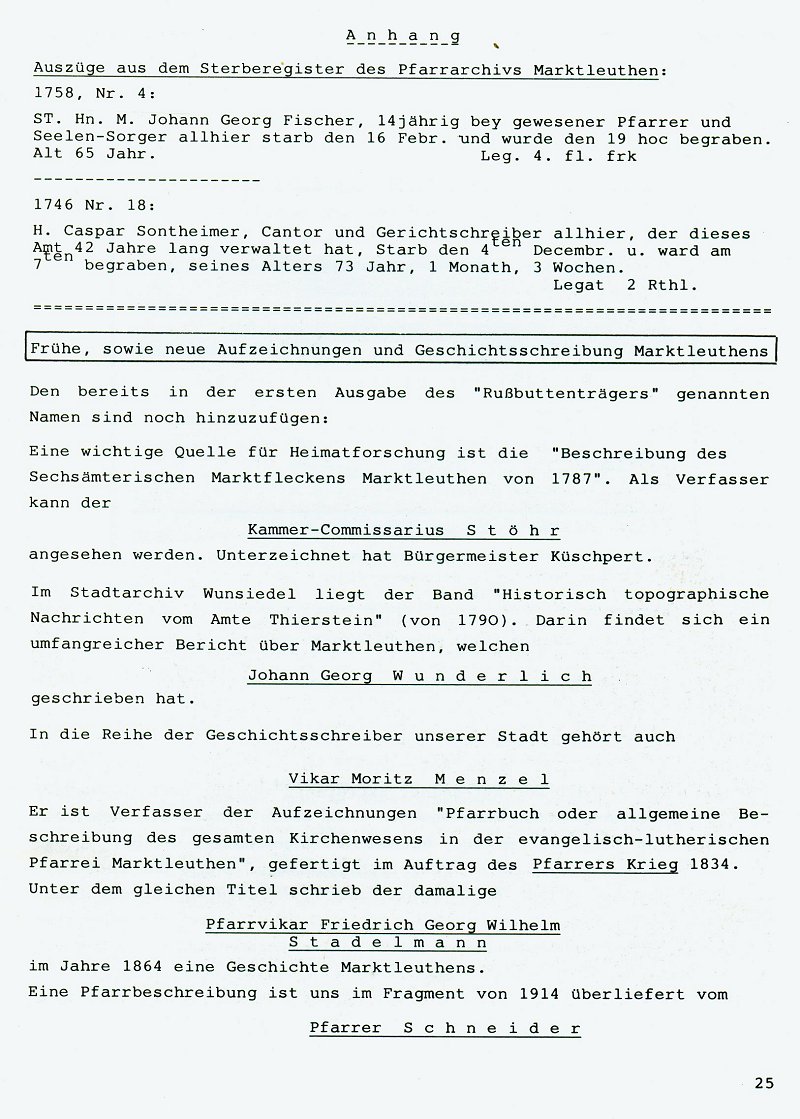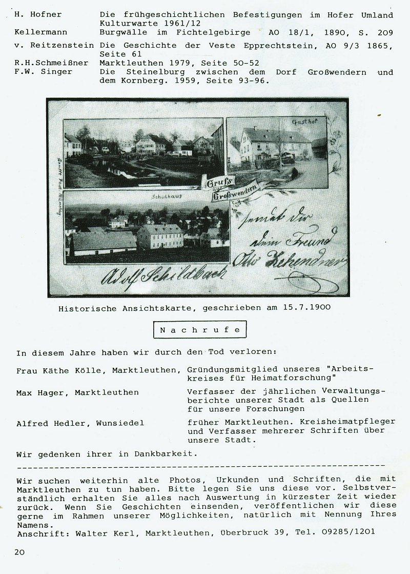 Veröffentlichungen des Arbeitskreises für Heimatforschung in Marktleuthen im Fichtelgebirge
