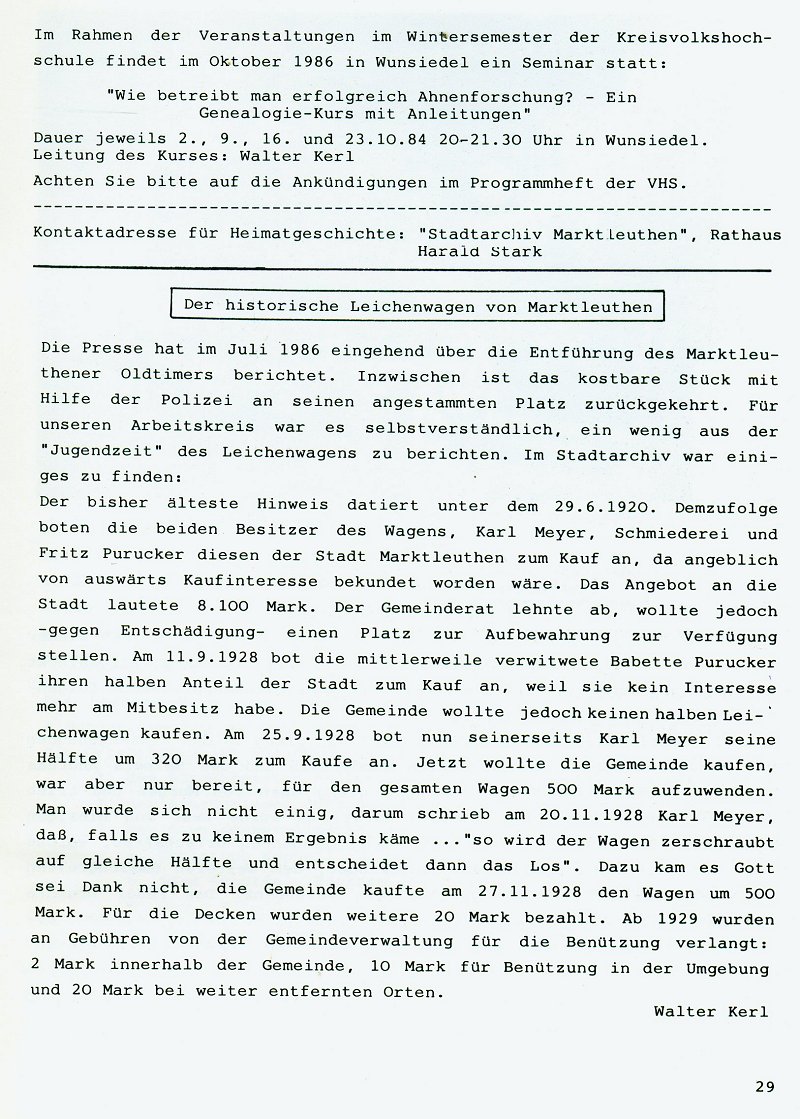 Der historische Leichenwagen von Marktleuthen (W. Kerl)