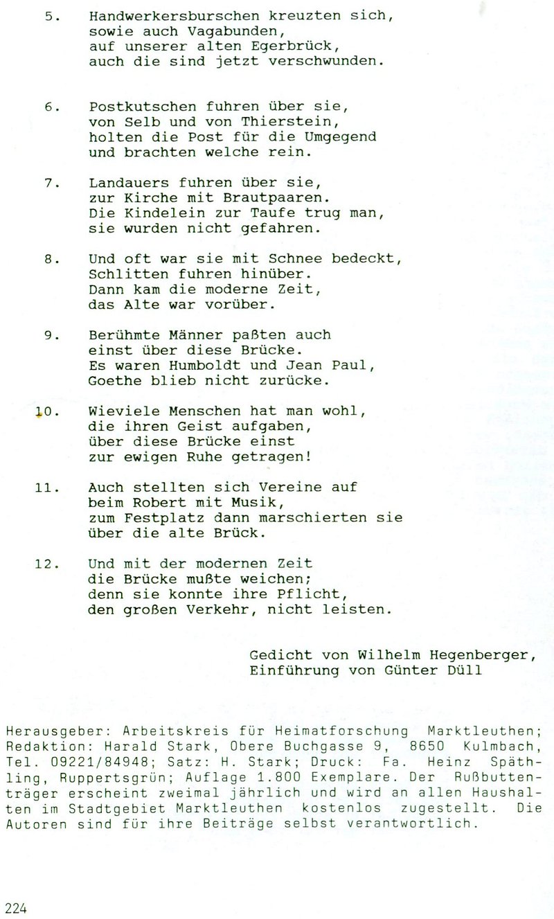 Historie der alten steinernen Egerbrücke in Marktleuthen