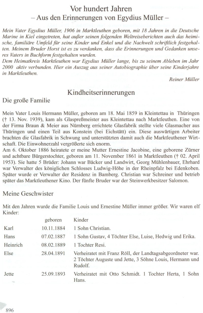 Vor 100 Jahren - Aus den Erinnerungen von Egydius Müller